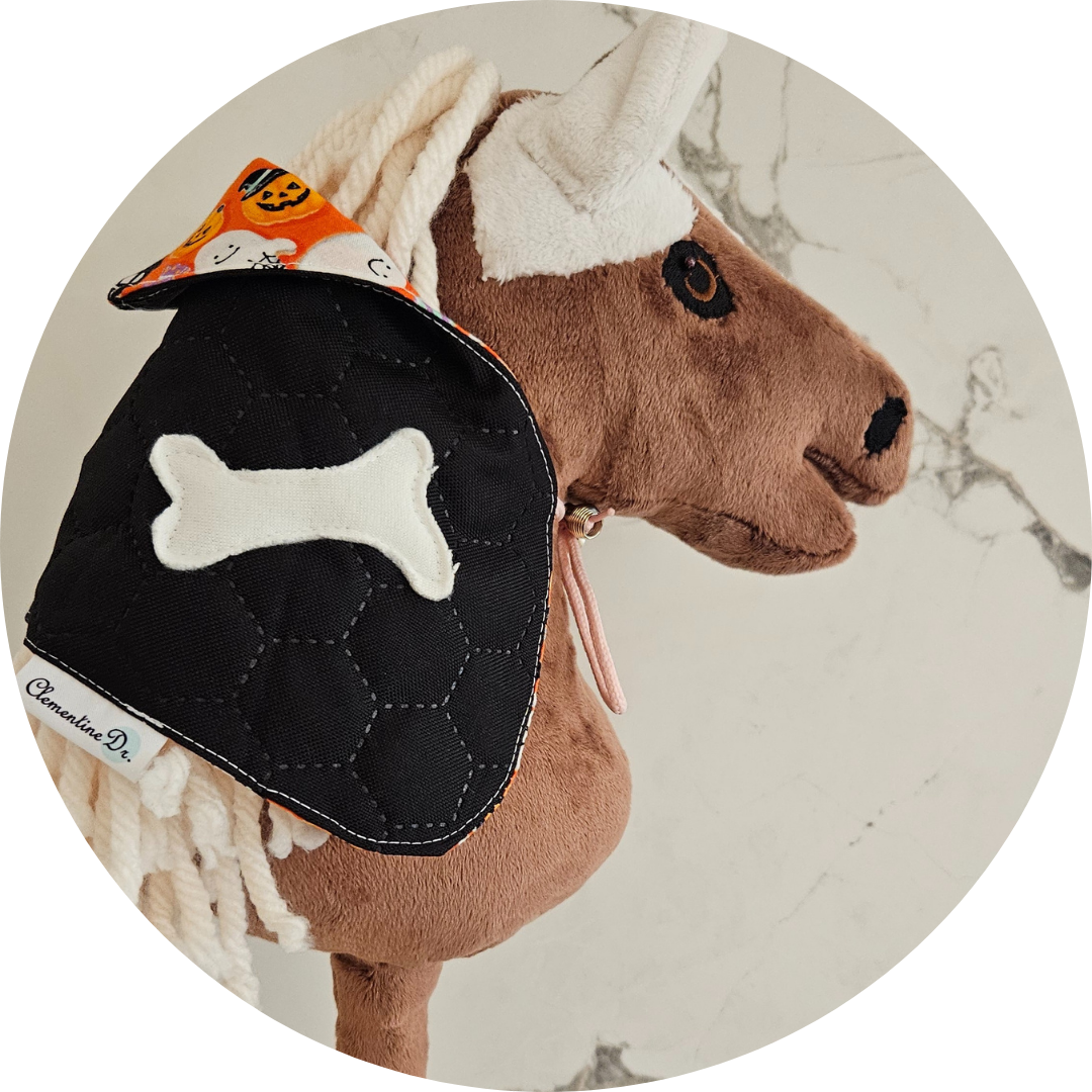 Ta derka zachwyci Ciebie i Twojego konika. Została uszyta z materiału o pięknych wzorach Halloween. Po drugiej stronie naszyte kości. Derka jest bardzo stylowa, można ją nosić dwustronnie, doda szyku i elegancji Twojemu konikowi.
