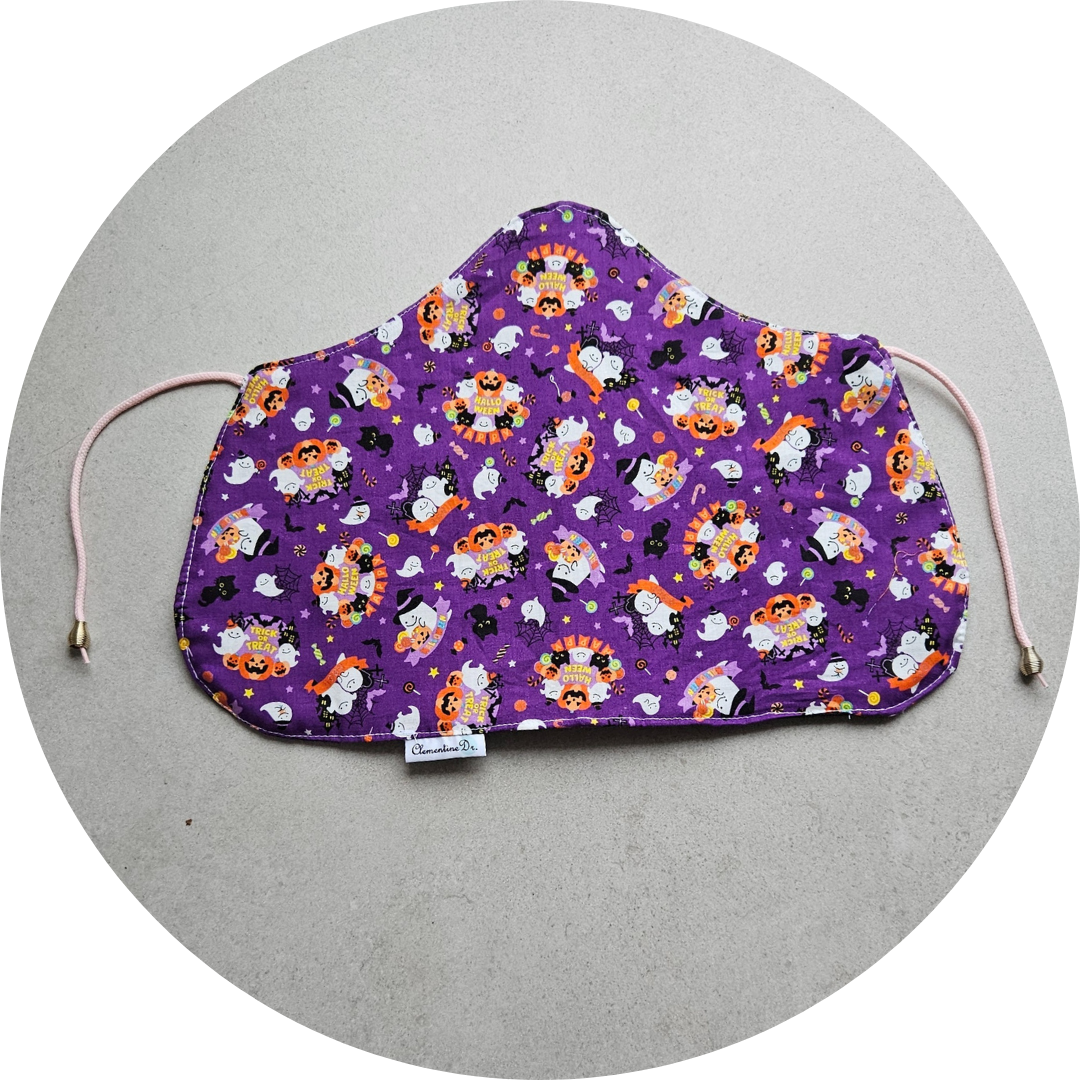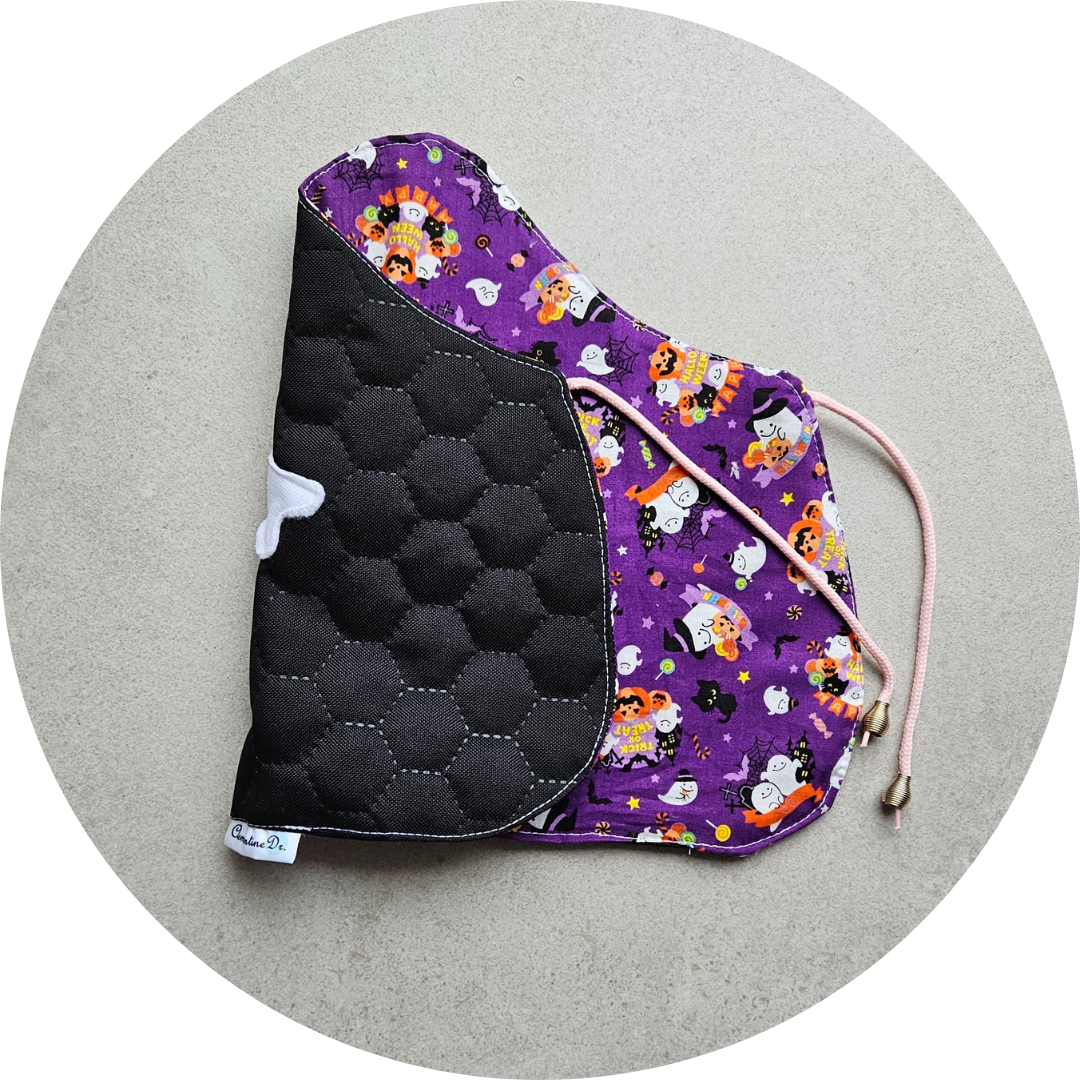 Pasuje na konika A3. Wyjątkowy Halloweenowy wzór w duchy, dynie lizaki, tło fioletowe. Ręcznie wykonana derka- uszyta z pikowanego materiału i cyfrowego materiału, ozdobiona naszytymi kośćmi. Pięknie trzyma kształt, ponieważ w środku znajduje się delikatne wypełnienie, które usztywnia derkę. Derka może być używana dwustronnie.