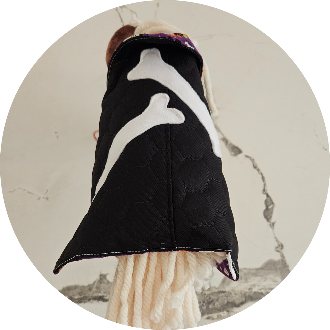 Ta derka zachwyci Ciebie i Twojego konika. Została uszyta z materiału o pięknych wzorach Halloween. Po drugiej stronie naszyte kości. Derka jest bardzo stylowa, można ją nosić dwustronnie, doda szyku i elegancji Twojemu konikowi.