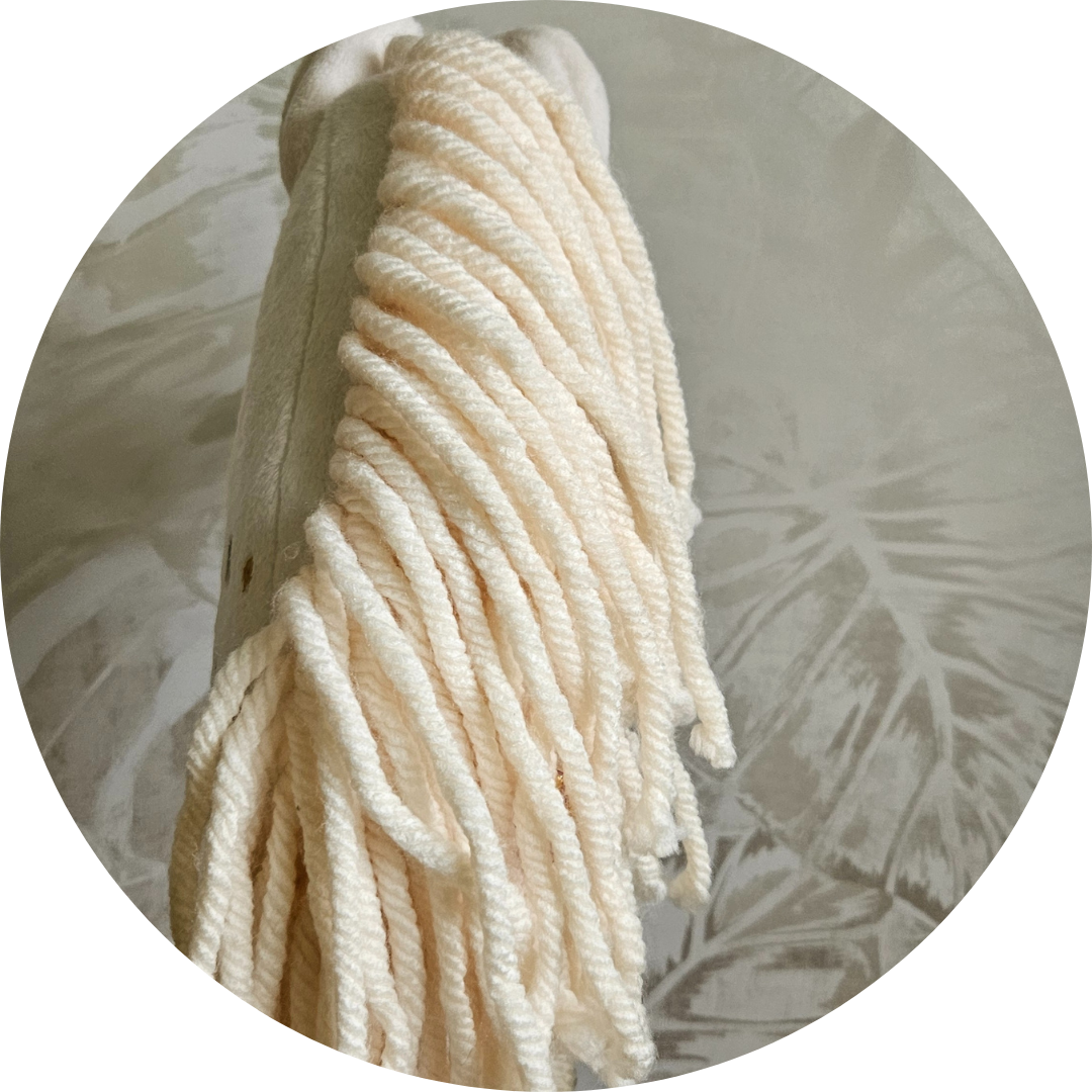 - Grzywa wykonana z grubej włóczki w kolorze złamanej bieli