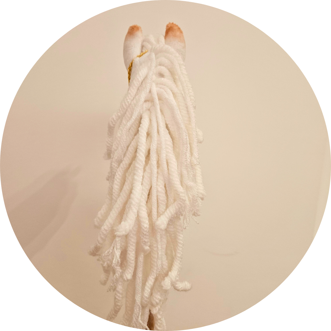 - Grzywa wykonana z grubej białej włóczki