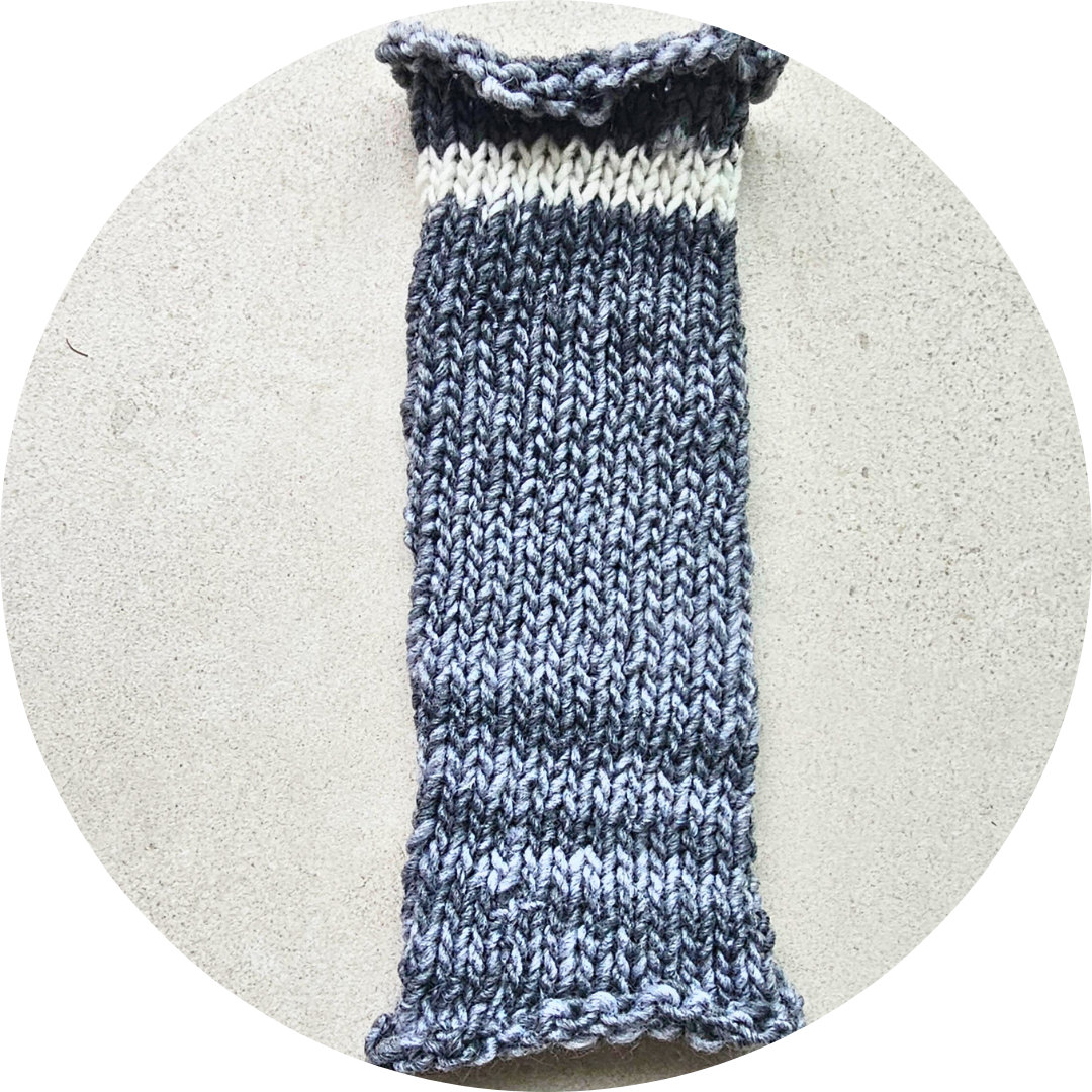 - materiał – włóczka w kilku przechodzących kolorach szarości i bieli