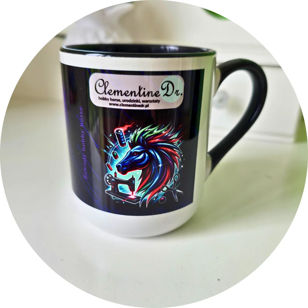 Kubek Clementine Dr. w kolorze głębokiej czerni zachwyca oryginalnym nadrukiem konia z kolorową, fantazyjną grzywą. To nie tylko praktyczny przedmiot, ale także wyjątkowy akcent dla każdego miłośnika hobby horsingu. Świetnie sprawdzi się na poranną herbatę, kawę, napój. Unikalny design podkreśla kreatywny charakter marki Clementine Dr.