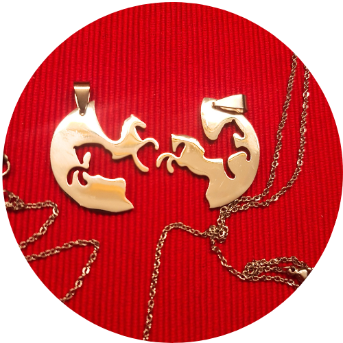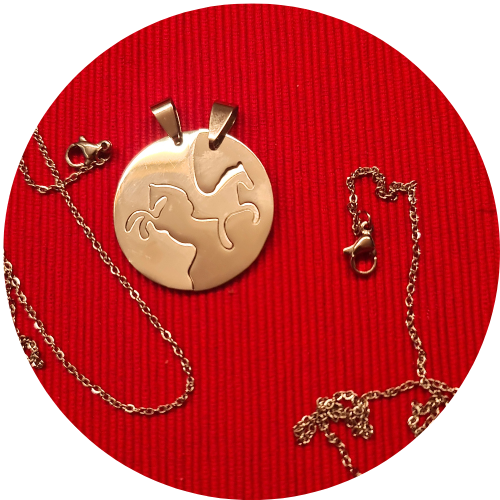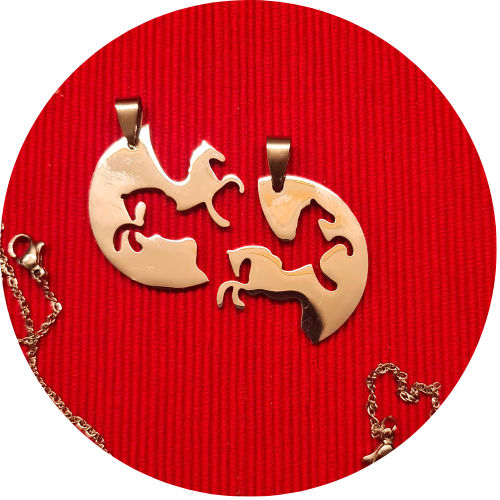 Piękna ozdoba na szyję dla Ciebie i Twojej przyjaciółki. Zestaw składa się z dwóch połówek w kształcie konia oraz dwóch naszyjników.