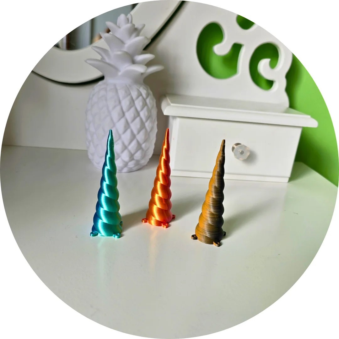 Róg jednorożca to wyjątkowy dodatek, który przemieni każdego hobby horse’a w prawdziwego stwora z bajki. Wydrukowany z trwałego, wysokiej jakości filamentu, ma perfekcyjnie skręconą formę, która przyciąga wzrok. Dzięki czterem dołączonym szpilkom mocuje się go łatwo i stabilnie – bez kleju, bez śladów, tylko czysta magia.